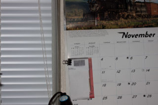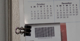 The left column are 100% crops of bar code on the receipt in the center of the frame. The column on the left is the image the crop was made from, re-sized to fit in a 1000px by 800px box. Both series were exported with standard output sharpening targeted for the screen. Both columns are ordered by increasing whole f-stops from f/5.6 to f/32.