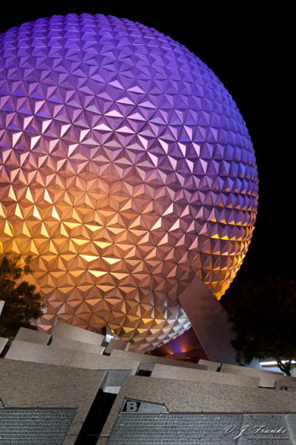 EPCOT After Dark: Spaceship Earth 5Dec2011 5 min read Spaceship Earth stands illuminated against the night sky at the entrance of Walt Disney World’s EPCOT theme park.