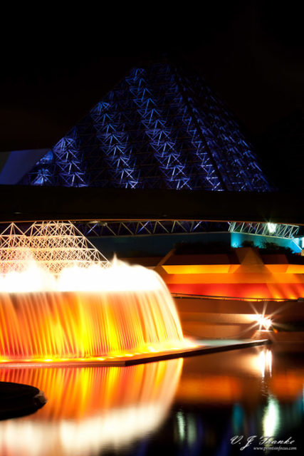 EPCOT After Dark: Imagination 7Dec2011 5 min read Reflections of Imagination and the upside-down waterfall.