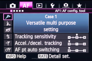 The AF tracking cases aren’t something that I’ve ever really used or needed to change. I’ve yet to encounter a situation where the first general purpose case didn’t provide satisfactory performance for me. Though I can certainly see how it might be different for photographers shooting certain sports.